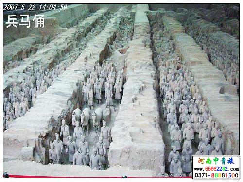 秦始皇兵马俑是秦始皇陵的一部分,秦始皇兵马俑博物馆在秦始皇从葬坑的基础上修建而成,位于陵园夕阳东门外3公里处。秦始皇兵马俑造型逼真,无一雷同。秦始皇兵马俑的车兵、步乓、骑兵列成各种阵势,严阵以待,遇敌出击,俨然一支整齐威严、浩浩荡荡的秦朝军队,保卫着秦始皇地下王国的安全。整个博物馆规模宏大,气势磅礴,秦始皇兵马俑被列为“世界八大奇迹’之一。