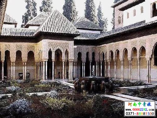 阿尔罕布拉宫建于13、14世纪,为摩尔人作为要塞之用的宫殿,堪称是回教艺术在西班牙的瑰宝。阿尔罕布拉宫按照意译应该为“红堡”。这是中世纪摩尔人统治者再西班牙建立的格拉纳达王国的宫殿。它由众多的院落组成,建筑在海拔730米高的地形险要的山丘上。宫殿的围墙东西长200米,南北长200米,高达30米。