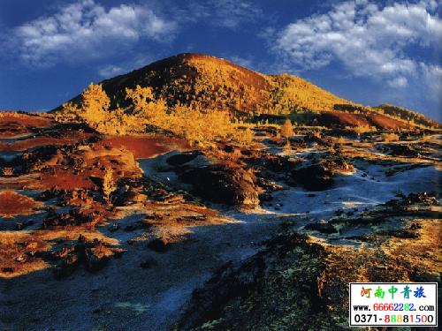 黑龙江省西北部的五大连池市,是我国着名的火山游览胜地。公元1719-1721年,火山爆发堵塞了当年的河道,形成了五个互相连通的熔岩堰塞湖。这里有景色奇特的火山风光、丰富完整的火山地貌和疗效显着的矿泉“圣水”,是一个集游览观光、疗养休息、科学考察多种功能的综合性天然风景名胜区。五大连地除五个堰塞湖外,还有许多古代和近代的火山。中、近期形成的火山共14座,其中老黑山和火烧山年龄最小,但体态庞大,景色尤佳,是五大连池中最佳景区。老黑山山势高耸,植被葱郁,相对高差达166米,是14座火山中最高的一座。
