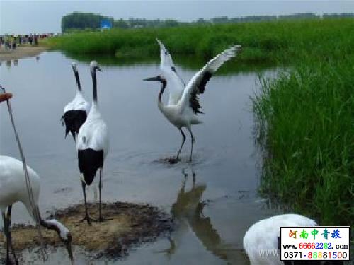 扎龙是中国着名的珍贵水禽自然保护区,位于市区东南 三十公里处,总面积二十一万公顷。区内地势低洼,河流漫 溢,苇草
